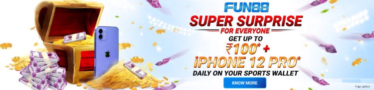Claiming iPhone 12 Pro and ₹100 at Fun88