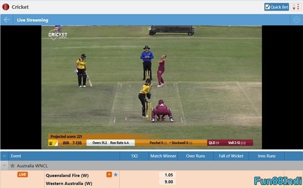 1. Live Streaming & Scoring: Fun88 allows live scoring of cricket matches but doesn’t allow the live streaming of the match. Hence, you can check the score of the matches but you cannot see the match while placing a bet. Well, Fun88 does allow in-play betting, you can watch the match on your TV while placing a bet on your mobile or desktop.