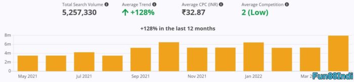 • Active Users: According to the Google keywords planner, Fun88 gets 350,000 searches per month globally, which denotes that they have around 350,000 users worldwide. The part of India players in Fun88 carries up to 85% with 300,000 players – that helps Fun88 become the best rank of the online betting site in India for 12 years.